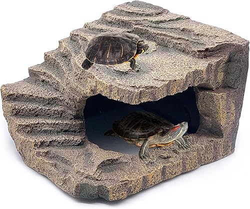kathson Turtles Basking Platform Tortoise Resting Terrace Climbing Ramp Resin Dock Tank Decorations Reptile Hiding Cave Hideouts for Aquatic Turtles, Frog, Newts and Salamanders,Large