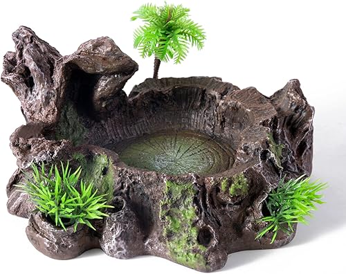 QIRMIZI Reptile Decor, Reptile Food Bowl,Artificial Rock Reptile Hideout, Climbing Ramp for Bearded Dragons, Lizards, and Other Reptiles