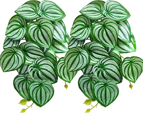 Woyrise Reptile Plants, Terrarium Hanging Plants Vines for Reptile Tank, Amphibian Habitat Leaves Decor with Suction Cup for Bearded Dragon Lizard Snake Gecko Frog Hermit Crab - 2Pcs Pink Heuchera