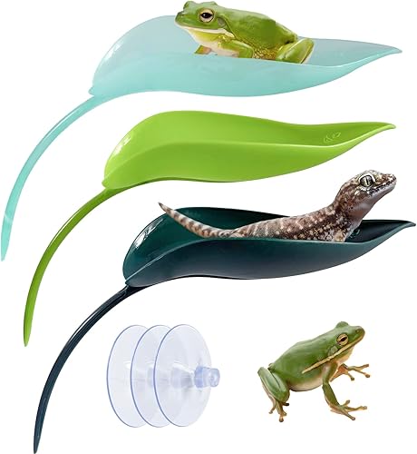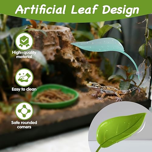 4pcs Suction Cup Plastic Leaf Decor with Reptile Feeding Dish – Ideal for Tree Frogs, Small Geckos, and Pet Snakes – Terrarium & Aquarium Decoration Set (Leaf Bowl & Hanging Leaves)