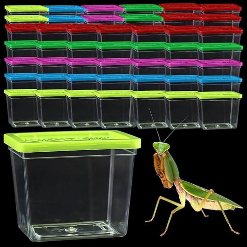 48 Pack Small Plastic Reptile Carrier Tarantula Enclosure Breeding Box Hatching Container for Spider Snail Turtle Hermit Crab Insect (3.9 x 2.9 x 3.1 Inch)
