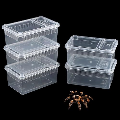 5 Pack Small Reptile Terrarium Breeding Box Transparent Hatching Container Plastic Feeding Box for Gecko Frog Spider Scorpion Centipede Insect