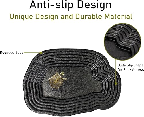 Large Reptile Bathing Pool Reptile Feeding Dish Water Bowl with Steps Aquarium Ornament for Gecko, Snake, Turtle, Bearded Dragon, Lizard Bath