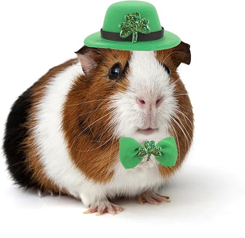 Guinea Pig Saint Patrick's Day Hat Bow Tie Set Small Animal Irish Green Top Hat with Shamrock Décor St.Patrick's Day Costume Accessories for Rabbit Bunny Ferret Bearded Dragon Puppy Kitten