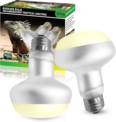 Reptile Heat Lamp Bulbs, 2-Packs 75W 3000H Heat Bulb with E26 Socket, UVA Basking Light for Bearded Dragons/Lizards/Turtles/Geckos/Snakes/Chameleons with Natural Sunlight Simulation