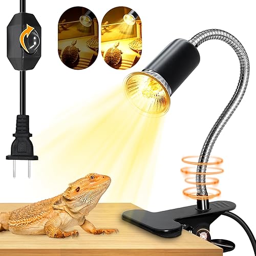Tortoise Heat Lamp,E27 UVA/UVB Reptile Heat Lamp,360°Flexible Rotating Chick Heat Lamp with Ceramic Bulb Holder,Dimmable Plant Growth Lamp, Metal Clip, 2.4M Cable, for Aquarium Turtle Snakes,No Bulb