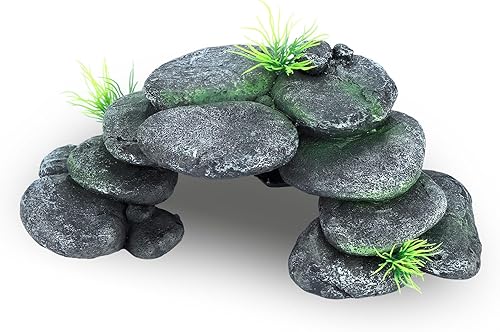 IBWell Resin Reptile Hides Pebble Shrimp Hides for Aquarium Tank Terrarium Reptile Rock Hide with Grass Fish Tank Caves and Hides Reptile Hideouts for Lizard Snake Gecko
