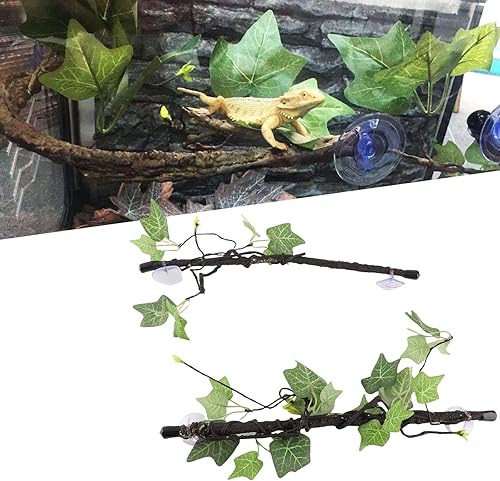Reptile Corner Branch, 2 pcs Plastic Strong Durable Imitation Bendable Jungle Climbing Vine Suction Cup Design Flexible Terrarium Plant Decoration for Amphibian Lizard Snake Gecko Bearded Dragon Cage