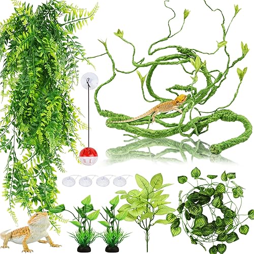 Bearded Dragon Accessories - Terrarium Hanging Plant Vines, Reptile Plants, Toys Ball With Bells, Leopard Gecko Tank Accessories for Lizard Snake Geckos Chameleon