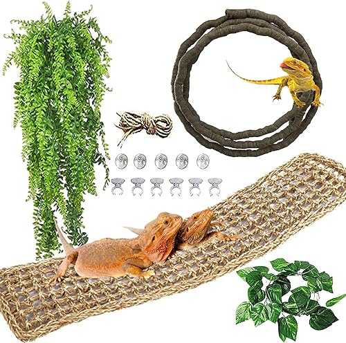 kathson Bearded Dragon Large Hammock,Lizard Lounger 29.53x7.08inches Natural Seagrass Fibers Pet Recliner Flexible Vine Decoration for Gecko Chameleon Snakes (4 PCS)