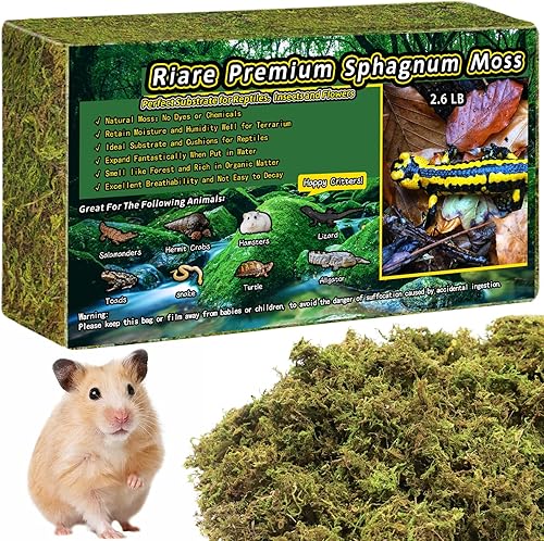 Riare 3.5 OZ Premium Sphagnum Moss for Reptiles- 4QT Natural Live Moss Reptile Moss Bedding for Terrarium, Hatching, Forest Sphagnum Moss Reptile Substrate for Snakes, Gecko, Turtles, Frogs, Leopard