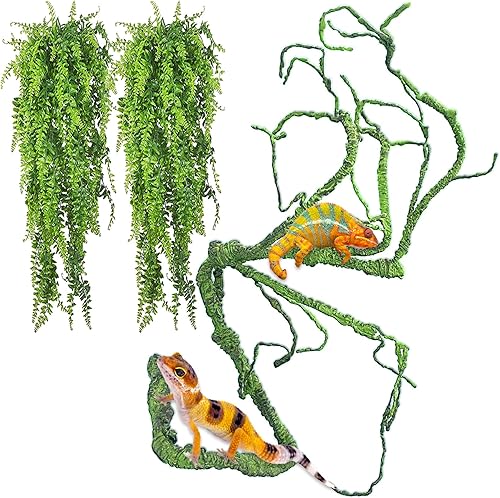 PINVNBY 14 PCS Reptile Plants Sets, Bearded Dragon Hammock, Terrarium Hanging Plant Vines Artificial Leaves, Reptile Habitat Climbing Decorations for Chameleons, Lizards, Geckos, Snakes