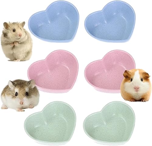 6PCS Hamster Food Dishes, Plastic Heart Shaped Food Bowl for Pet, Cute Water Dish for Rabbit Hedgehog Gerbil Rat Rodent Small Animals