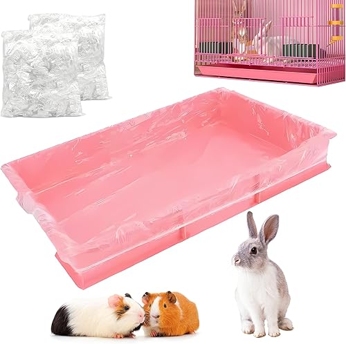 100 Pcs Rabbit Cage Liner Disposable Bunny Cage Liner Bag 26' X 18''- Clear Elastic Pet Toilet Film Small Animal Tray Covers for Bunnies Ferrets Chinchillas Birds - Leak Proof & No Mess