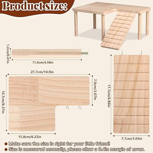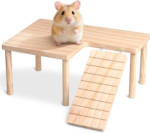 Wanocean Wooden Hamster Platform with Hamster Climbing Ladder, Dwarf Syrian Hamster Cage Accessories,Small Animal Climbing Platforms for Gerbils Mouse Guinea Pig Syrian Mice (Needs Assembly)