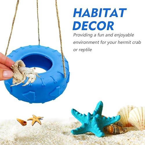 Colours Hermit Crab Tire Swing,Suction Cup Hook Climbing Toy,Hermit Crab Terrarium Accessories - A Must-Have for Any Reptile Amphibian Small Aquatic Animals Lover(Blue)