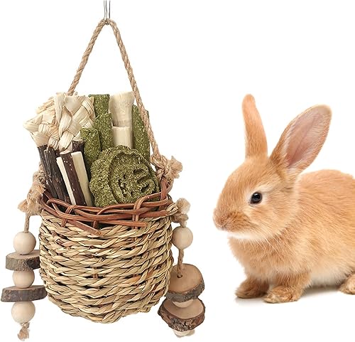 Rabbit Chew Toys,Natural Seagrass Hanging Chew Toy,Woven Water Plant Treat for Rabbits,Guinea Pigs and Other Small Pets TeethTeeth Grinding Accessory