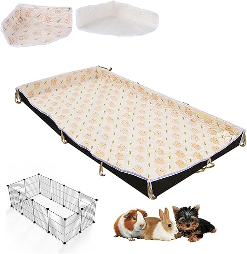 Washable Guinea Pig Cage Liners, 24’’×48’’ Reusable Fleece Pee Pads for Guinea Pigs, Rabbits, Bunny, Waterproof & Super Abosorbent Liner Mat for Dog, Ferret, Chinchilla