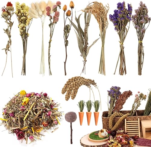 Homaisson Natural Herb Sprays Hamster Bedding, Hamster Cage Decor, Grain Seed Dried Flowers Hamster Edible Grain Habitat for Dwarf Syrian Gerbils Guinea Pigs