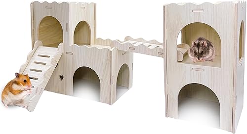 Hamster Hideout House Multi Chamber Rat Hide Hut Castle Large Climbing Playground Exploring Labyrinth Tunnel for Syrian Dwarf Gerbils Hamsters Mice (Pattern B)