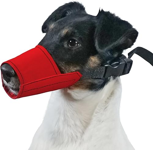 JorVet Soft Dog Muzzle | Adjustable, Breathable Nylon for Preventing Biting | Comfortable & Secure Fit for Medium Dogs – Perfect for Everyday Walks, Vets & Grooming | Red