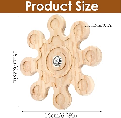 Chinchilla Chew Toys Natural Wooden Snowflake-Shaped Chinchilla Wheel, Interactive Hamster Chew Toys & Guinea Pig Toy for Cage Enrichment 6.3 Inch Diameter Wheel Spinner Interactive for Teeth