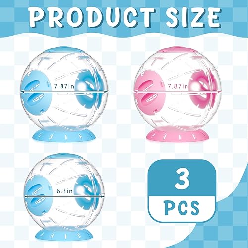 3 Pcs Hamster Exercise Ball with Detachable Base 7.9/6.3 Inch Transparent Running Wheel Running Ball Toy Promote Exercise Health, Easy to Clean for Syrian Dwarf Hamster Gerbils Mice Small Pets