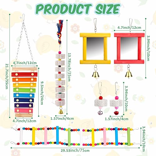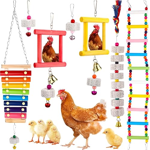 Ripeng 7 Pcs Chicken Toys for Coop Set Chicken Enrichment Toys Including Xylophone Mirror Large Chick Beak Grinding Calcium Stone Ladder with Bell Accessories for Coop Hens Parrots