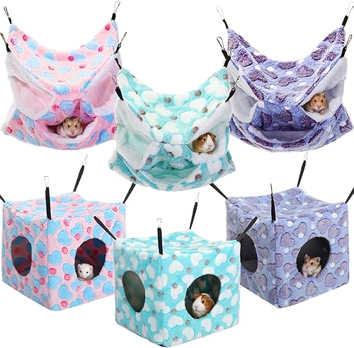 6 Pcs Ferret Cozy Cage Accessories Triple Rat Cage Hanging Hammock Guinea Pig Cube Hammock Chinchilla Bed Hideout Small Animals Toy Accessories for Sugar Glider Squirrel Hamster