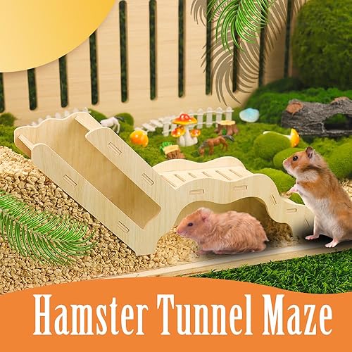 Small Size Hamster Explorer Set - Snap-Together Wooden Burrow with Panoramic Window, Natural Chew-Safe Design & Underground Activity Viewer for Cage Enrichment