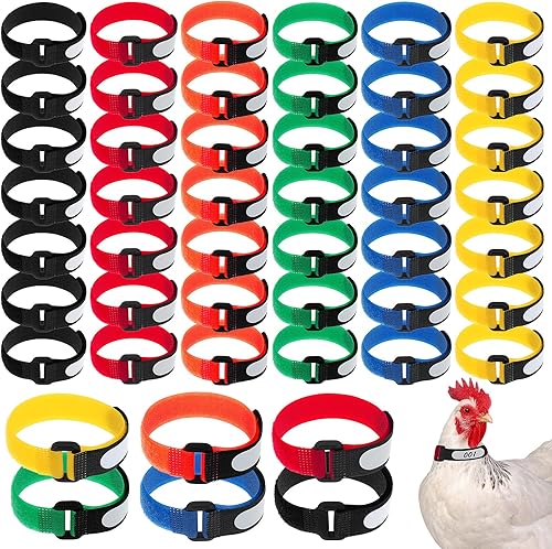 Shappy 48 Pieces Large Rooster Collar Crow Collar with Blank Label Anti Crow Noise Neck Belt Nylon Rooster Collar for Roosters Cockerel, Prevent Chicken from Screaming or Disturbing Neighbors