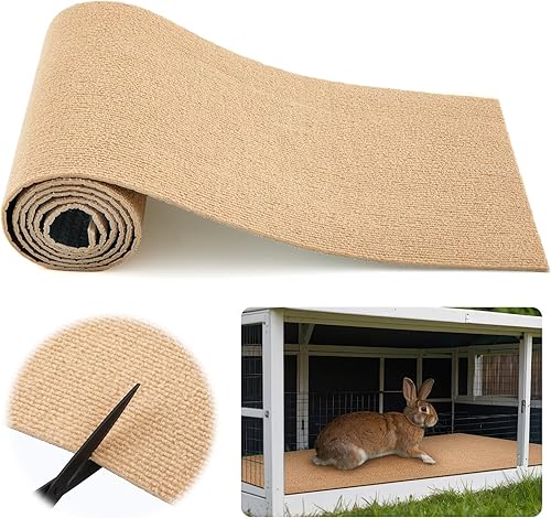 Rabbit Scratch Mat 12 Inch X 3.28 ft Self Adhesive Bunny Scratching Pad Cuttable Claw and Teeth Care Rabbit Mat for Cage Small Animal Scratching Rug for Biting Sleeping Nesting (Khaki)