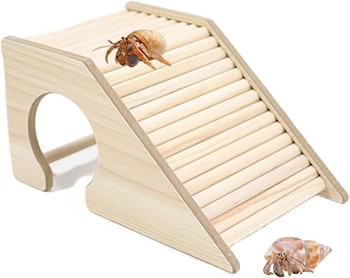 Hermit Crab Hideout with Ramp, Wooden Climbing Toys, Aquarium Ladder Bridge Ramp Toy, Small Animals Tank or Cage Accessories, Hermit Crab Habitat
