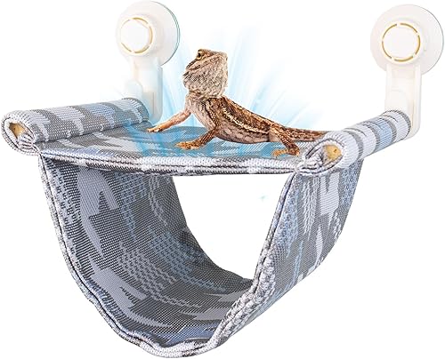 FlidRunest Bearded Dragon Hammock with Suction Cups, Soft Lizard Hammock Bed, Winter Warm House Tent, Reptile Tank Perch-Yellow