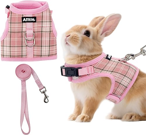 AIITLE Adjustable Bunny Harness & Leash Set - Soft Mesh Liner, Comfort Fit Plaid Pattern Vest with Magic Tape Design, Portable for Small Animal Pets Puppy Cat Rat Squirrel Ferret, Beige L