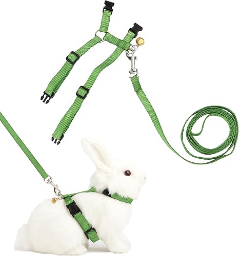 Hypeety Rabbit Bunny Harness with Leash Adjustable Soft Nylon Rabbit Vest Harness Lead Pink Blue Lead Leash All Season for Small Animals (Green)