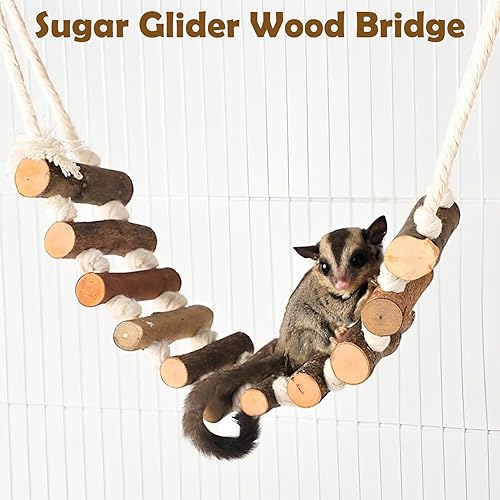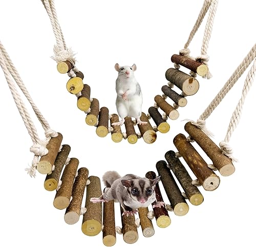 BNOSDM Sugar Glider Climbing Toys 2 Pack Nature Wood Rope Ladder Hanging Sugar Glider Bridge Cage Accessories for Mice Rat Hamster Gerbil Chinchilla