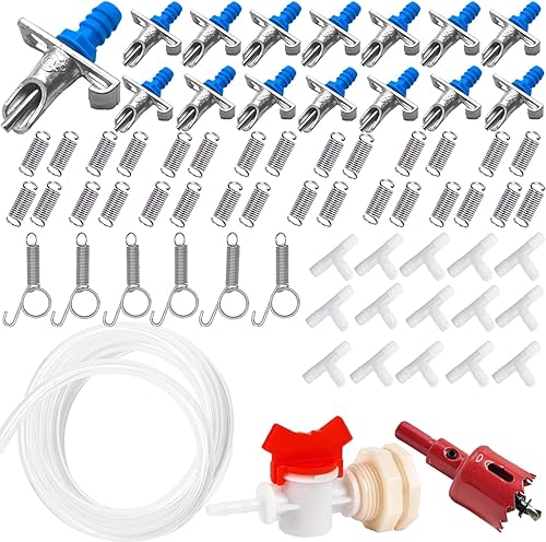 Automatic Rabbit Watering System Kit Include 15 Nipple Drinker Feeders, 20ft Hose, Watering System Bucket Connector, Hole Opener, 6 Spring Latches for Rabbit Cage Doors