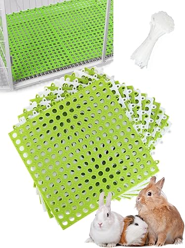 Rabbit Cage Mat for Feet - Pack of 8 Plastic Rabbits Resting Mats 12x12 Bunny Foot Pad Small Animal Cage Accessories for Adult Guinea Pig Chinchilla Ferret, Easy to Cut and Splice (Grey)