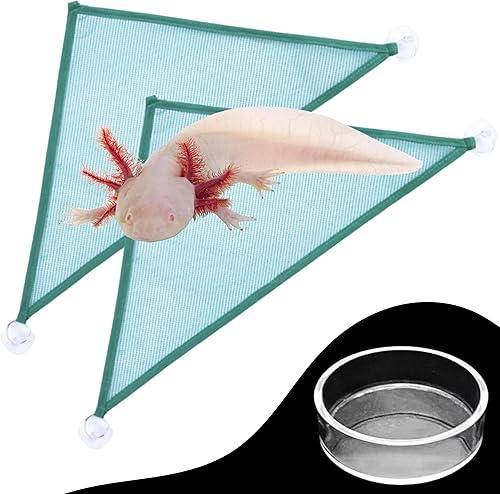 Axolotl Hammock for Aquarium with Fish Feeder, Axolotl Hammock for Aquarium with Food Bowl Tray Feeder, Breathable Mesh Reptile Hammocks Lounger Ladder, Bearded Dragon Tank Accessories (Green, M)