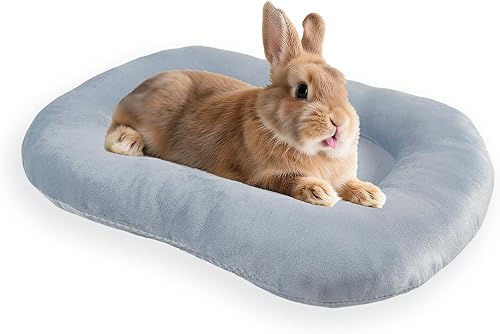 15.7’’×12.2’’ Cozy Bunny Bed for Rabbits Indoor, Soft Concave Oval Beds for Small Animal, Washable Plush Mat for Bunnies, Guinea Pigs,Rabbit,Blue