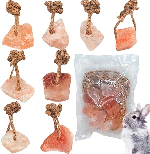 Hamiledyi 8 PCS Rabbit Salt Lick Block Natural Small Animal Himalayan Salt Lick Chew Toys with Hanging Rope Rat Mineral Block Chew Treat Supplies for Bunny Guinea Pig Chinchilla Ferret Hametsr