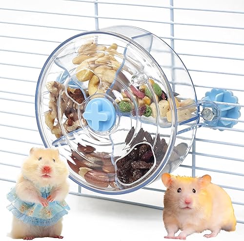 VCEPJH Rat Foraging Toy Interactive Slow Feeder with Transparent Rotating Treat Dispenser Wheel for Enrichment Activities Pet Rat Cage Accessories Ideal for Syrian Hamster Gerbil Mice (Blue)