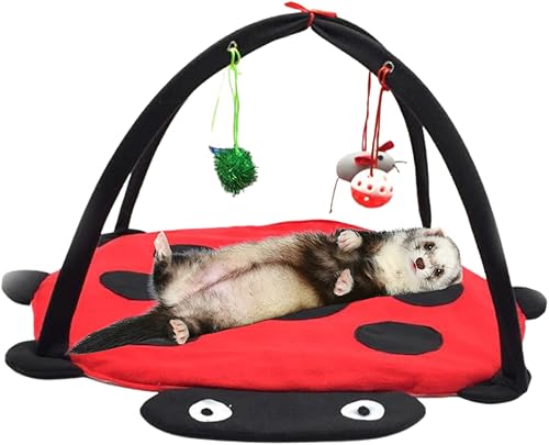 HAICHEN TEC Ferret Play Mat - Foldable Fleece Activity Center with Hang Toys Balls Mice Small Animal Interactive Mat Tent Toy for Exercise Napping (Ladybug)