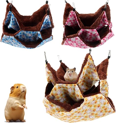 Weewooday 3 Pcs Rat Hammock 3 Tier Pet Guinea Pig Hammock for Cage Hanging Bed Cage Accessories for Hamster Parrot Sugar Glider Ferrets Rat Chinchilla Playing Sleeping(Blue, Purple, Green)