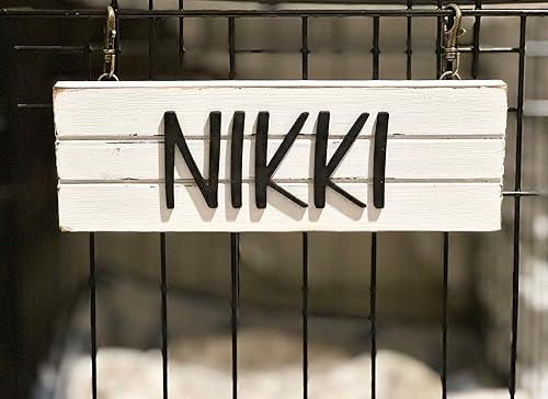 Personalized Dog Crate Sign - Hanging Pet Kennel Name Tag - Pet Carrier Name Plaque - Custom Pet Gift - New Dog Owner - White Shiplap Farmhouse Decor - Handmade - Pick your Fon