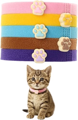 GoldTiger Newborn Kitten Collar Set with Cute Paw Print - 5 Pack, Total Length 9.06 Inches