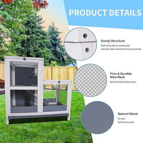 Outdoor Chicken Coop for 2-4 Chickens Wooden Hen House Poultry Pet Hutch Run Cage w/Waterproof Asphalt Roof, Ramp, Nesting Box, Wire Fence (80")