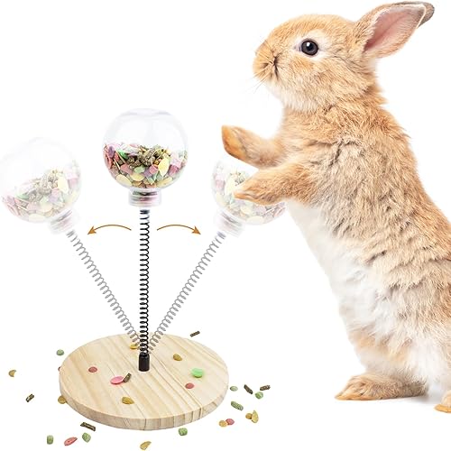 FlidRunest Rabbit Foraging Ball with Wooden Base, Interactive Slow Feed Treat Ball Release Puzzle Toy for Rabbit, Feeder Boredom Busting Fun Maintain Your Bunny Entertained