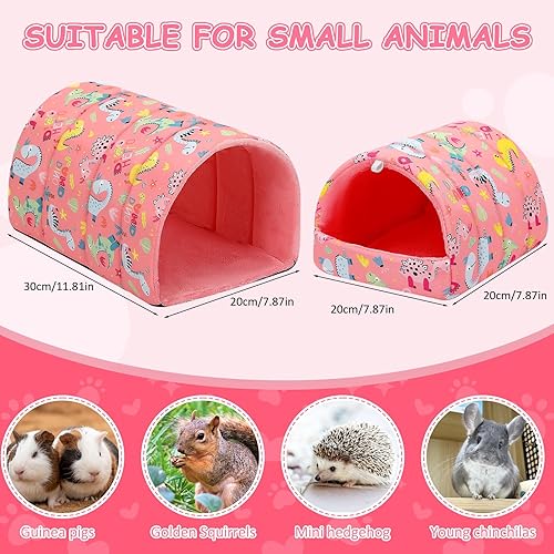 2 Pack Guinea Pig Hideout, Guinea Pig Bed with Guinea Pig Tunnel Washable Small Animal House Cage Accessories for Mouse Chinchillas Hamsters Hedgehogs Ferrets Bearded Dragons and Rats (Pink)